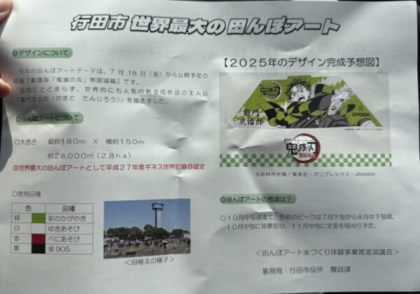 なんと2025年は劇場版「鬼滅の刃」無限城編 第一章猗窩座再来の公開を記念したスペシャルな田んぼアートが公開されている。