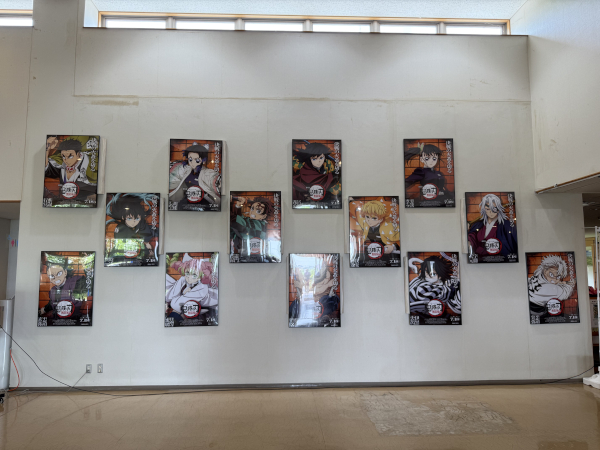 エントランスには鬼滅の刃主要キャラのイラストが飾られていた。