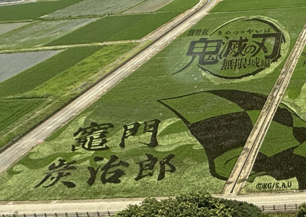 広大な田んぼに描かれた竈門炭治郎は圧巻だ。