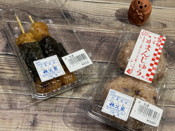 行田市にある和菓子 秩父屋の『磯部だんご』と『いがまんじゅう』。