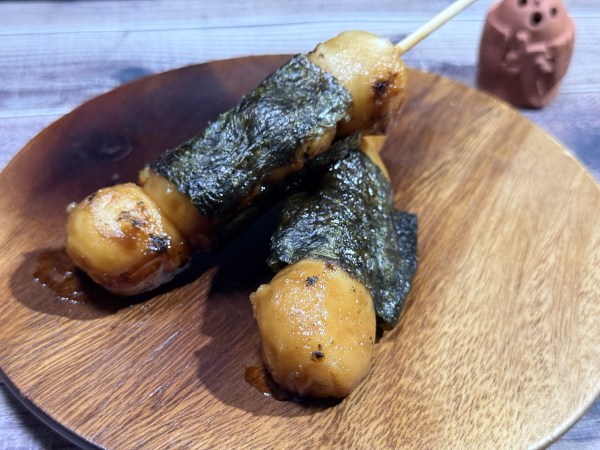 磯部だんごとは、だんごに醤油を塗り香ばしく焼いて仕上げに海苔を巻いたもの。